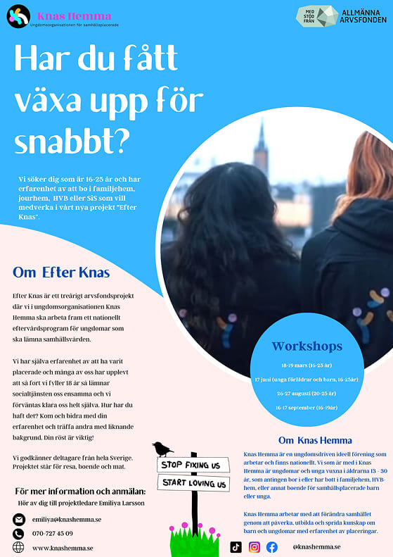 Efter Knas är ett efterstödsprogram för unga mellan 16 – 25 år under och efter samhällsvården.